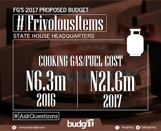 This iThe dramatization of the Frivolous items in the 2017 proposed Nigeria budget - the creeping crippling depression might have found its way into Aso Rock as everything in the budget proposal has been increased fabulously. We got the picture of the frivolous items in the budget from ww.yourbudgetit.com, then we make light of it to lighten up your day but really it is not a laughing issue. The continued wastage of our common resources in a different pattern is appalling; here is another avenue for wasteful spending. Meanwhile, the Punch Newspaper also find it unacceptable that today's editorial was dedicated to the issue of waste and unnecessary spending: http://punchng.com/discarding-wasteful-items-2017-budget/.